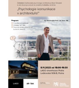Zakladatel Aplikované psychologie architektury Kareł Smejkal si vás dovoluje pozvat na privátní...
