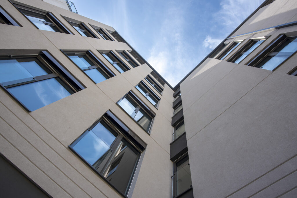 Zasklení bylo vybráno s ohledem k předpokládané míře hluku. V zadním traktu je ve vyšších patrech logicky míra hluku menší, než ve spodních bytech. Tomuto faktu bylo zasklení rovněž přizpůsobeno – odstupňováno. V souvislosti s požadavky na vysoký hlukový útlum byl řešen i speciální koncept větrání prostřednictvím okenních výplní, a to tak, aby byla zajištěna základní hygienická výměna vzduchu a zároveň nedošlo ke zhoršení hlukově izolačních vlastností dodávaných oken. Z tohoto důvodu byl zvolen systém AirComfort, systém, který je řešením pro energeticky účinné, automaticky regulované větrání. Toto unikátní řešení navíc eliminuje riziko růstu plísní.