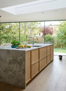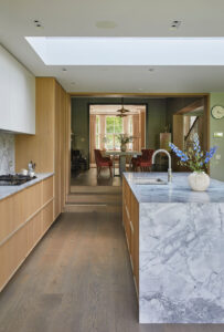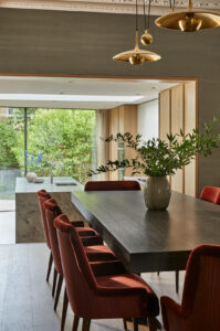 Gregory Phillips Architects se snažili maximalizovat potenciál domu vytvořením rozsáhlé nové přístavby v zadní části, která by dům otevřela do zahrady prostřednictvím moderních otevřených prostor a zároveň zachovala formální přijímací místnosti a tradičnější prvky v přední části.