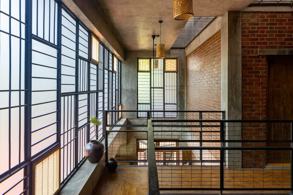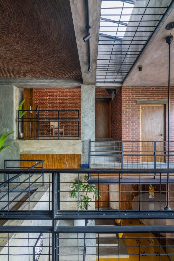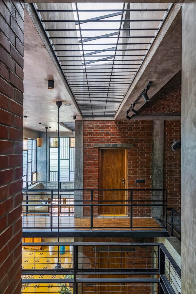 Jednoduché, ale důmyslné rozšíření prostoru schodišťové podesty na otevřený meditační prostor s mexickou kopulí jako jeho korunou a most s ocelovou kostrou dodávají celostnímu prostorovému zážitku na zajímavosti. Minimalistické zábradlí podél mostu zachovává prostupnost a vizuální propojení uvnitř domu. Jelikož jsou prostory naplánovány tak, aby směřovaly dovnitř do centrálního prostoru s dvojnásobnou výškou, vyzařují vrozený pocit otevřenosti bez jakýchkoli kompromisů ve funkčnosti.