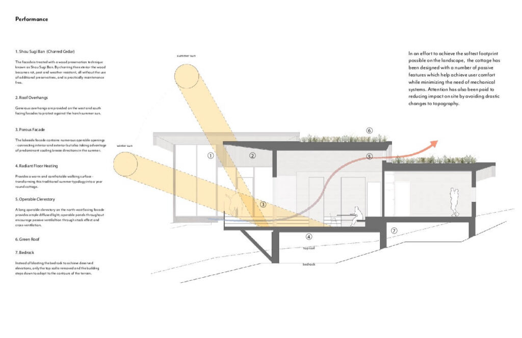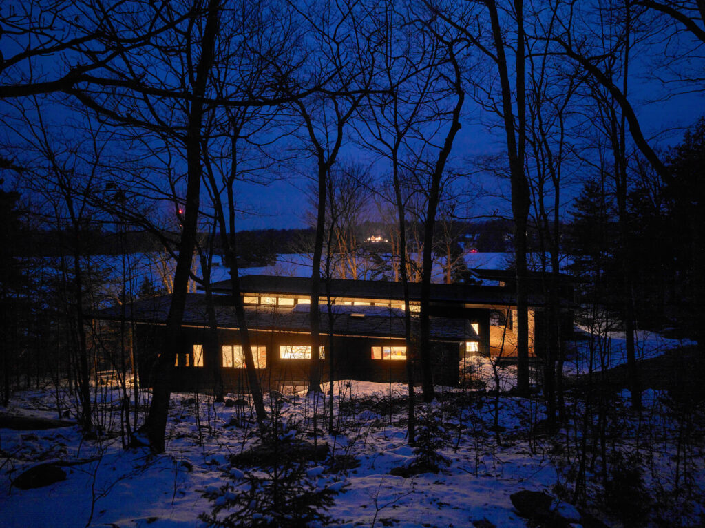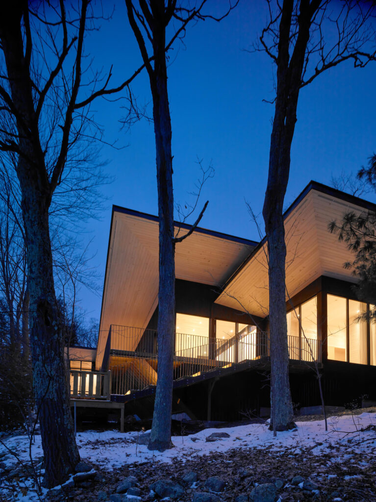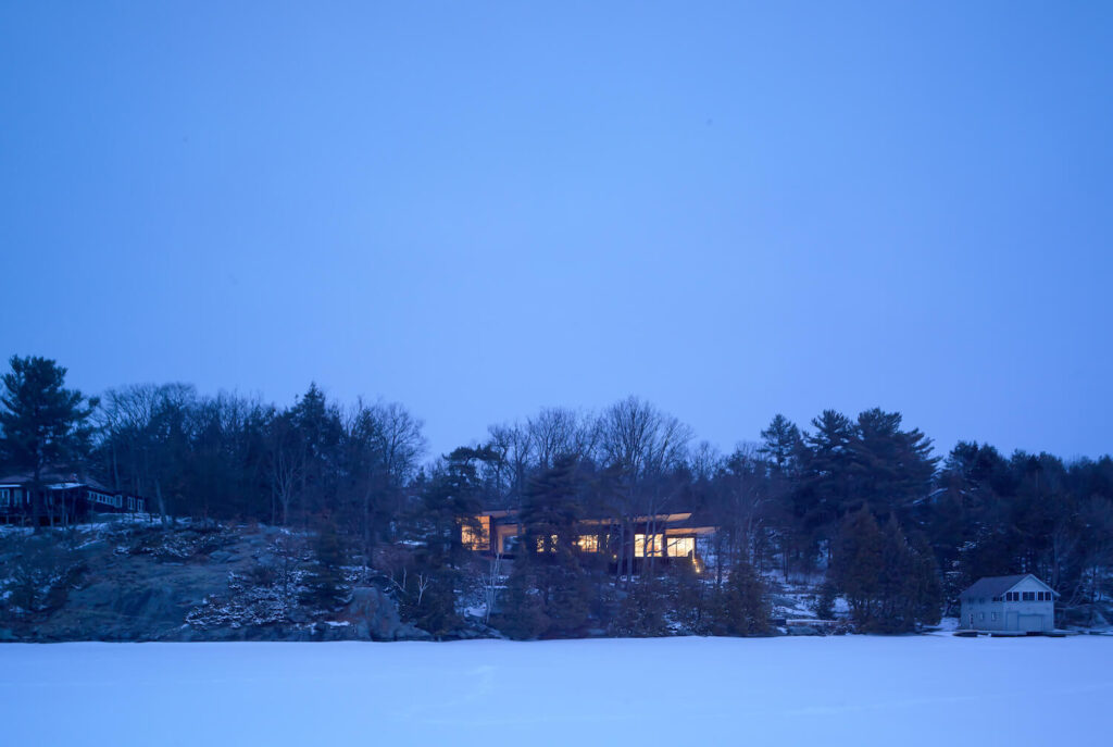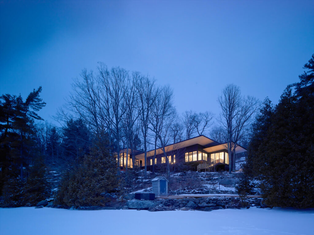 VFA Architecture + Design: V reakci na místní podmínky i programové potřeby šlo v tomto projektu o návrh útočiště, které by vyhovovalo potřebám a pohodlí uživatelů v průběhu všech ročních období v současném kontextu a zároveň se nenápadně začlenilo do kulturní a přírodní krajiny Muskoky.