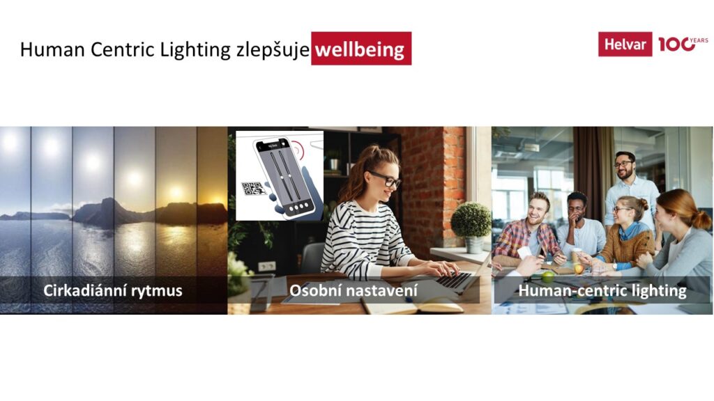 - Nastavením řízení osvětlení v konceptu Human Centric Lighting,