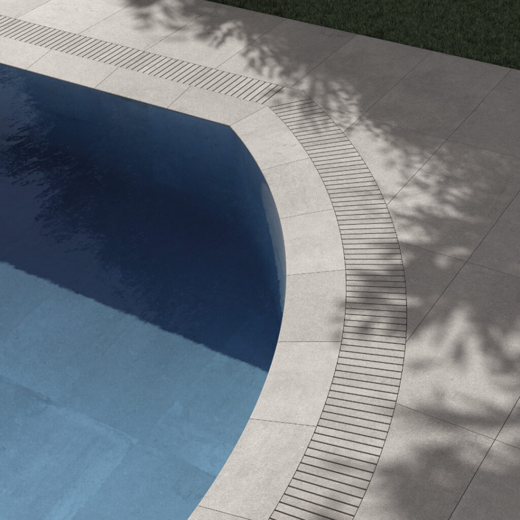 Vnější a vnitřní hrany bazénů, kaskádovité okraje, sběrače nečistot, vířivky a malé bazény