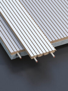 Pro milovníky dřeva můžete nabídnout klientům širokou škálu dřevěných dekorů stropního systému. Jedná se o příčně drážkované lamely různých šířek, stejně tak lamely s již před frézovanými otvory pro dosažení vysokých parametrů na snížení doby dozvuku, tedy kolikrát nepříjemné ozvěny v interiéru. Dřevěný teplovodní systém se dá instalovat jak pro stropní podhledy, tak své využití najde i v předstěnách. Všechny nabízené dekory mohou a nemusí být vybaveny potrubním systémem.