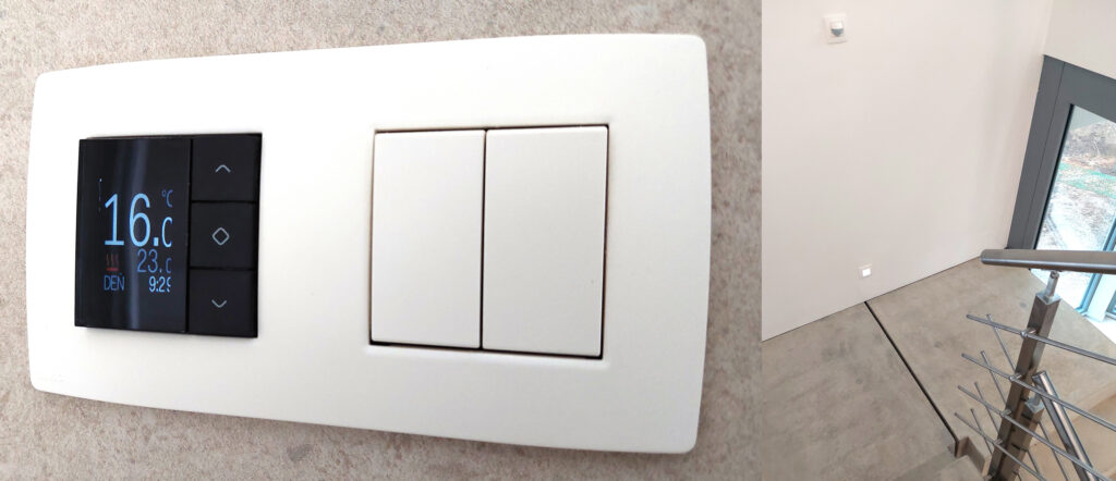 V domech byly instalovány digitální ovládací panely Niko Digital Black, kterými lze elegantně z jednoho místa ovládat vytápění, osvětlení včetně světelných scén, čerpadlo na dešťovou vodu, žaluzie, rolety, ventilaci, a dokonce i hudbu či další prvky domovní elektroinstalace Niko Nome Control. Samozřejmostí je vzdálené ovládání přes mobilní zařízení. Tento ovladač má nejen plno funkcí pro intuitivní ovládání vaší domácnosti, ale i elegantní design s řadou mezinárodních ocenění.