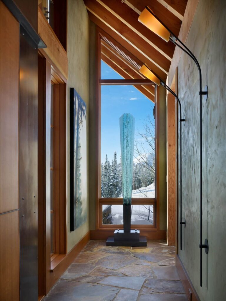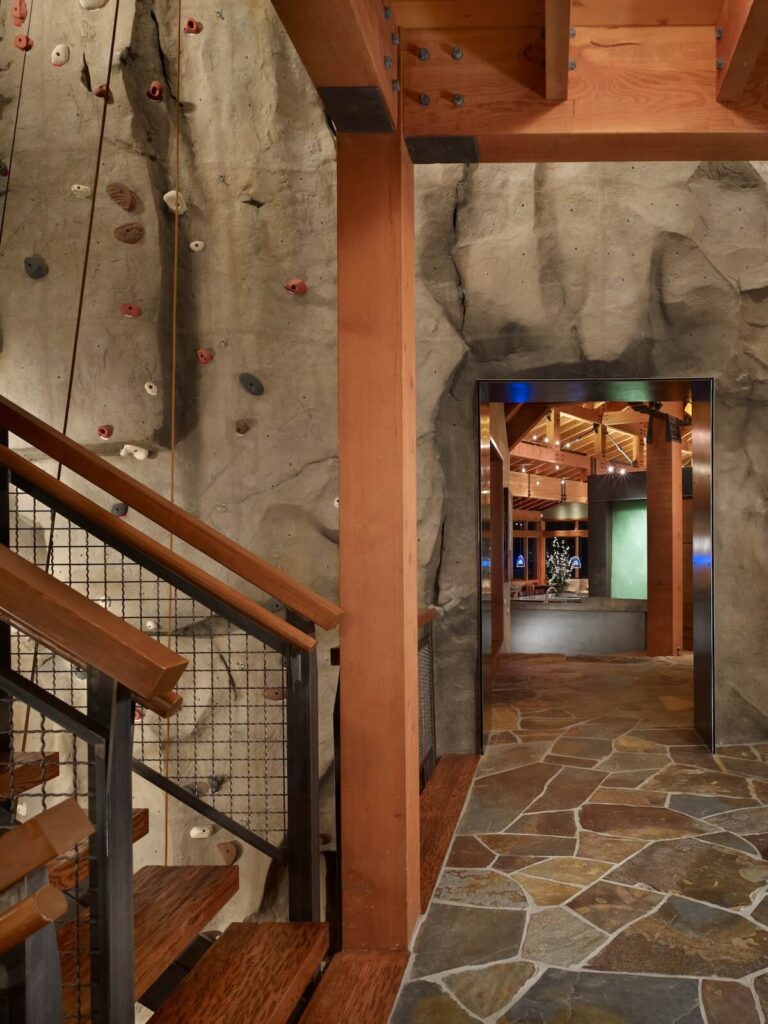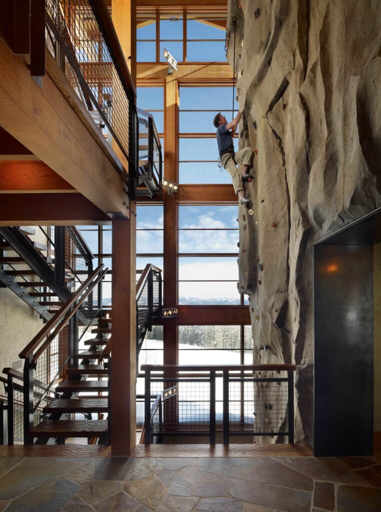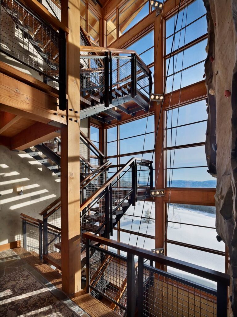 Dům o rozloze 13 375 čtverečních stop je umístěn tak, aby se z něj naskýtal výhled na hory na východě, západě a jihozápadě, a jeho okna spojují vnitřní a venkovní prostředí, zatímco energeticky účinné geotermální vytápění zajišťuje komfortní bydlení při zlomku typické uhlíkové stopy. Rozdělení obytných prostor do samostatných křídel a úrovní, včetně hlavního apartmá propojeného vyhřívaným a proskleným mostem, umožňuje domu pojmout až třicet hostů, a přitom se cítit intimně jen ve dvou. Čtyřpatrové schodiště s prosklenými stěnami, jehož součástí je lezecká stěna navržená tak, aby odrážela místní geologické útvary, je poutavým středobodem.