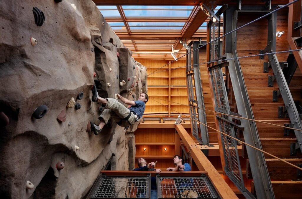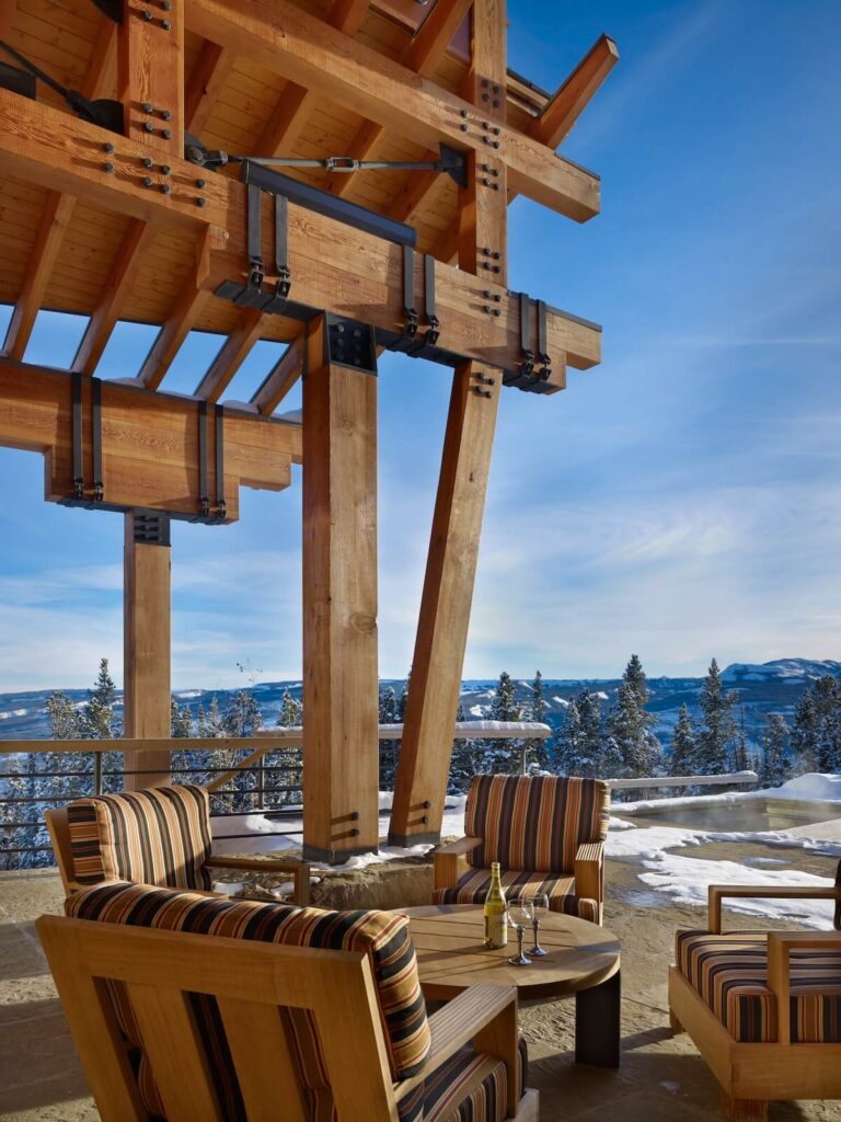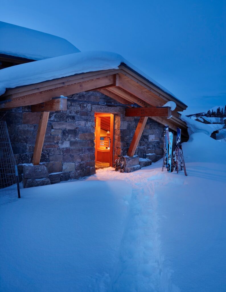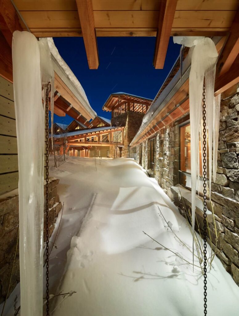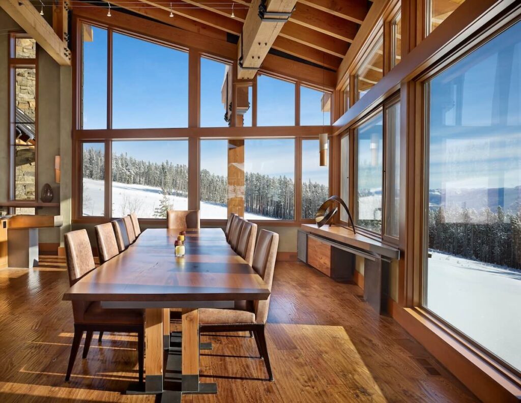 Dům o rozloze 13 375 čtverečních stop je umístěn tak, aby se z něj naskýtal výhled na hory na východě, západě a jihozápadě, a jeho okna spojují vnitřní a venkovní prostředí, zatímco energeticky účinné geotermální vytápění zajišťuje komfortní bydlení při zlomku typické uhlíkové stopy. Rozdělení obytných prostor do samostatných křídel a úrovní, včetně hlavního apartmá propojeného vyhřívaným a proskleným mostem, umožňuje domu pojmout až třicet hostů, a přitom se cítit intimně jen ve dvou. Čtyřpatrové schodiště s prosklenými stěnami, jehož součástí je lezecká stěna navržená tak, aby odrážela místní geologické útvary, je poutavým středobodem.