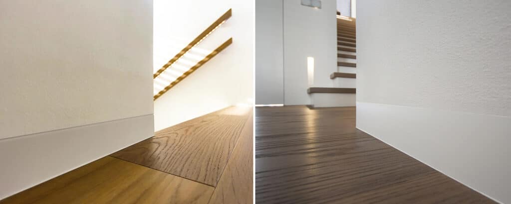 Dokonalé propojení podlahy se zdí díky skryté soklové liště Dorsis Linus