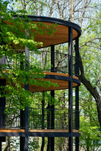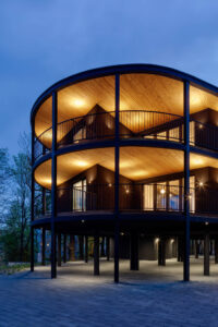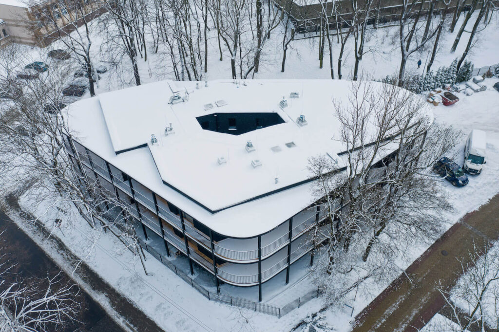 Takto vzniklá budova získala jedinečné prvky v podobě velkých teras, ze kterých si můžete vychutnávat půvaby okolí, a plné propojení s přírodou díky blízkosti stromů a dodatečnému osvětlení na nádvoří. V posledním kroku byl utvářen rytmus průčelí. Bylo zavedeno vertikální členění fasády, které vytváří výrazné pravidelné čtverce uspořádávající volně utvářený objem budovy. Dbalo se na to, aby členění fasády a její rytmus byly rovnoměrné a neobsahovaly anomálie v podobě přístavků nebo dodatečných prvků.